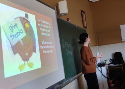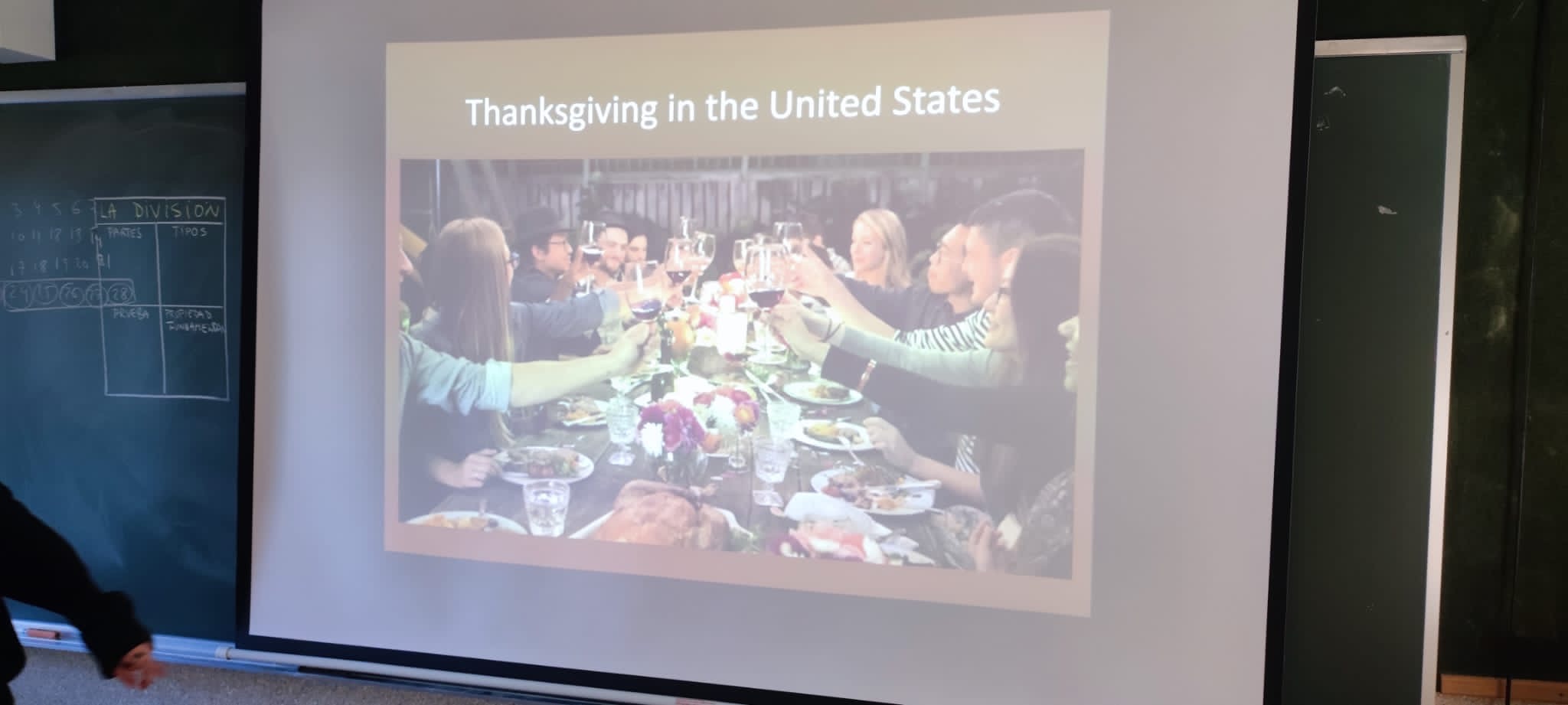conversation assistants, Emilia and Ellie, in class. This holiday takes place on the fourth Thursday of each November and is a very special day for most North Americans. It’s a time