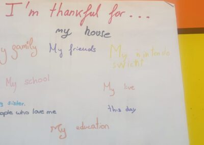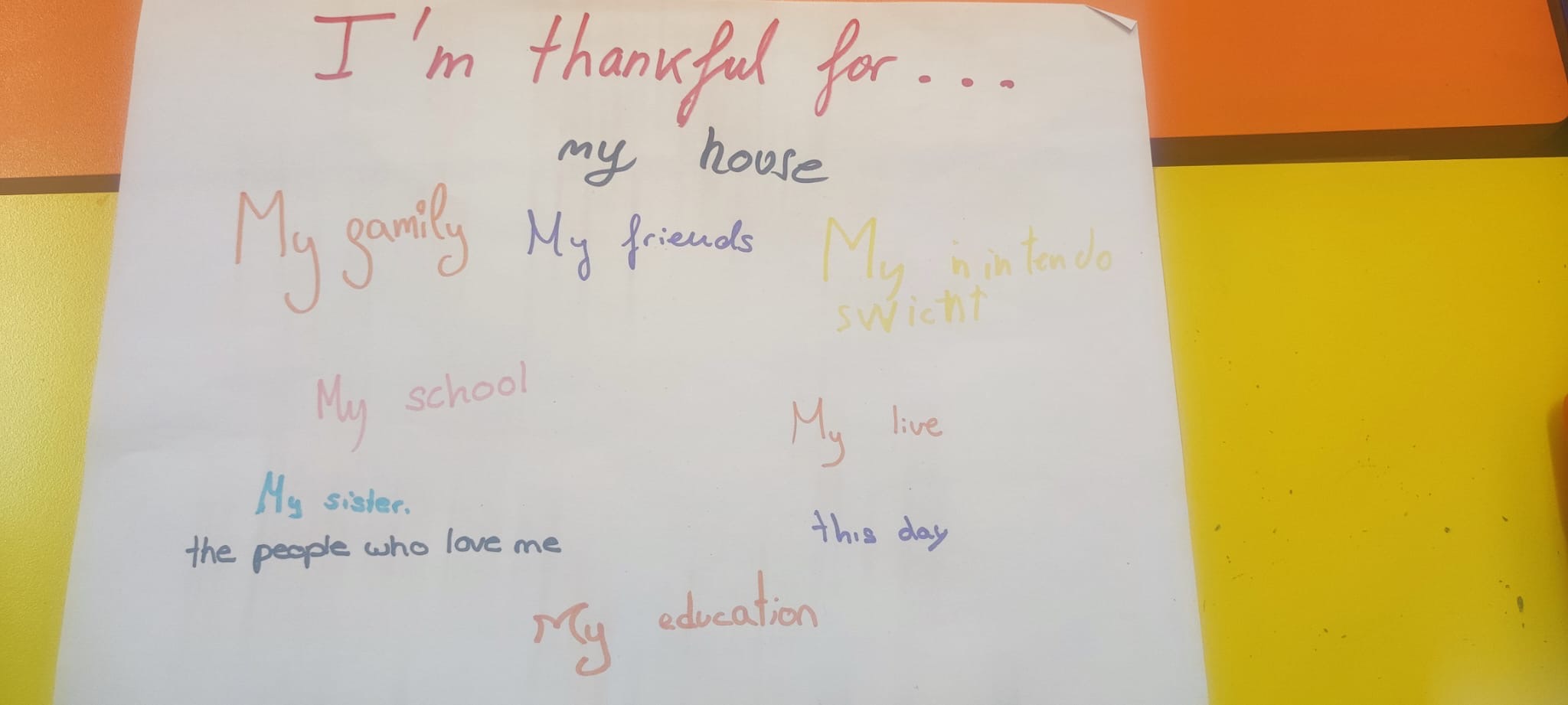 and made a list of all the things they are grateful for. In Secondary, students from 1st & 2nd ESO have decorated feathers, in which they wrote the things they are thankful for, to make a